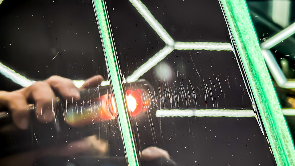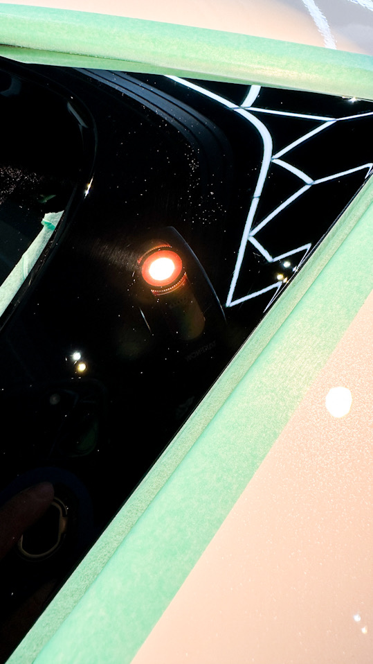 ウィンドウも専用コーティング剤でコーティングして行きます。